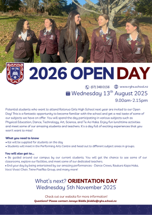 This is a fantastic opportunity to explore our school, experience a range of subjects such as Physical Education, Dance, Art, Science, Technology, and Te Ao Haka, and get a real feel for the vibrant life at RGHS.